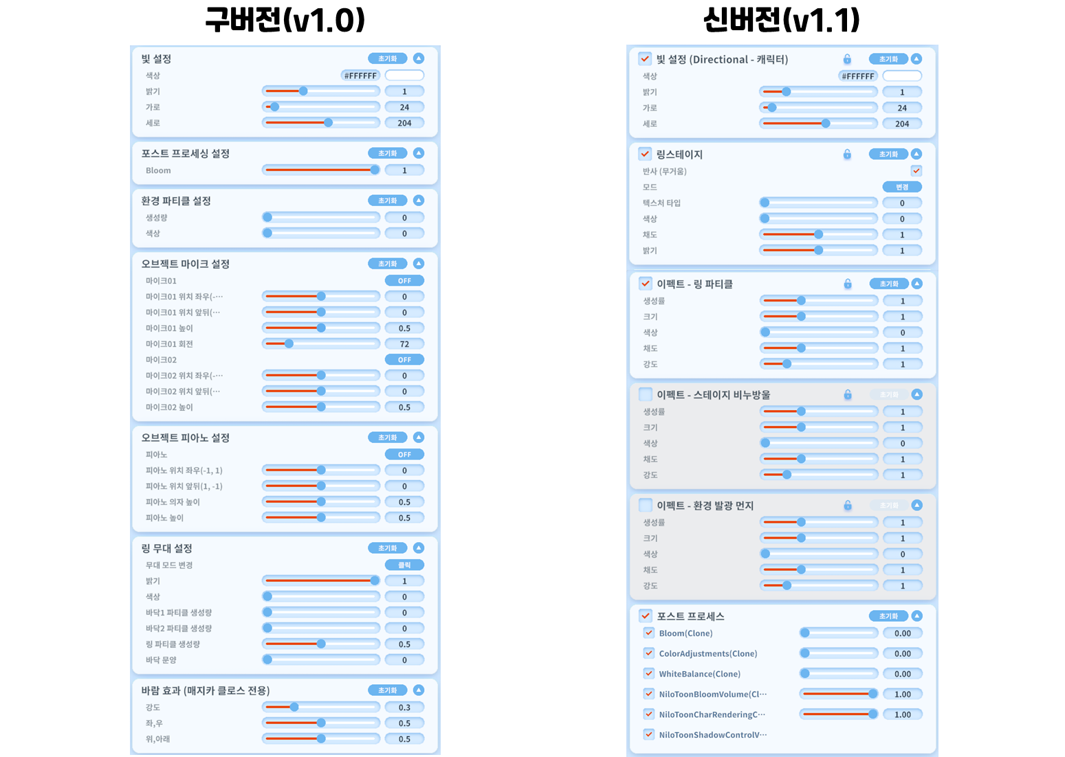 - 조명, 이펙트, 오브젝트 ON/OFF 가능