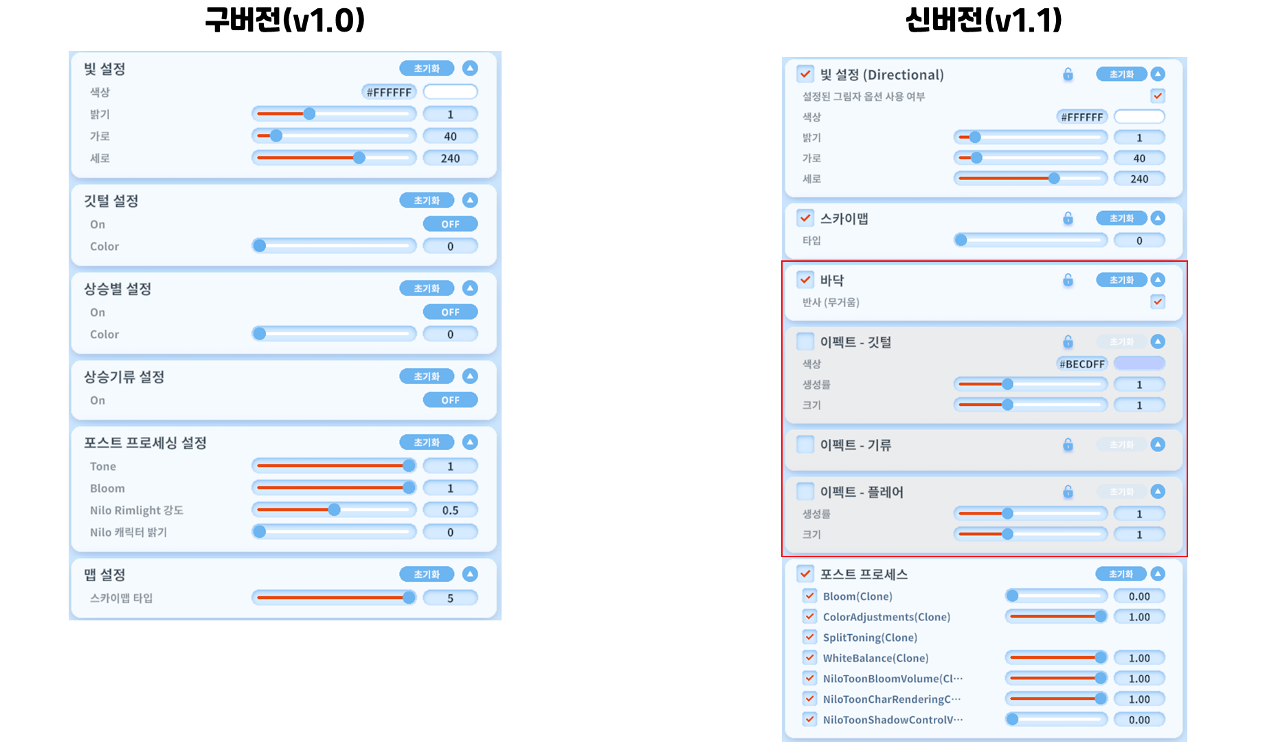 - 닐로툰 캐릭터 밝기 조절 포스트 프로세싱 추가