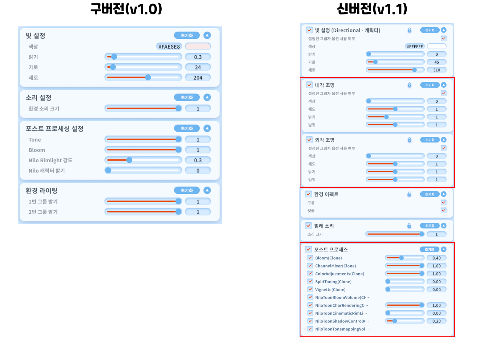 - 닐로툰 캐릭터 밝기 조절 포스트 프로세싱 추가