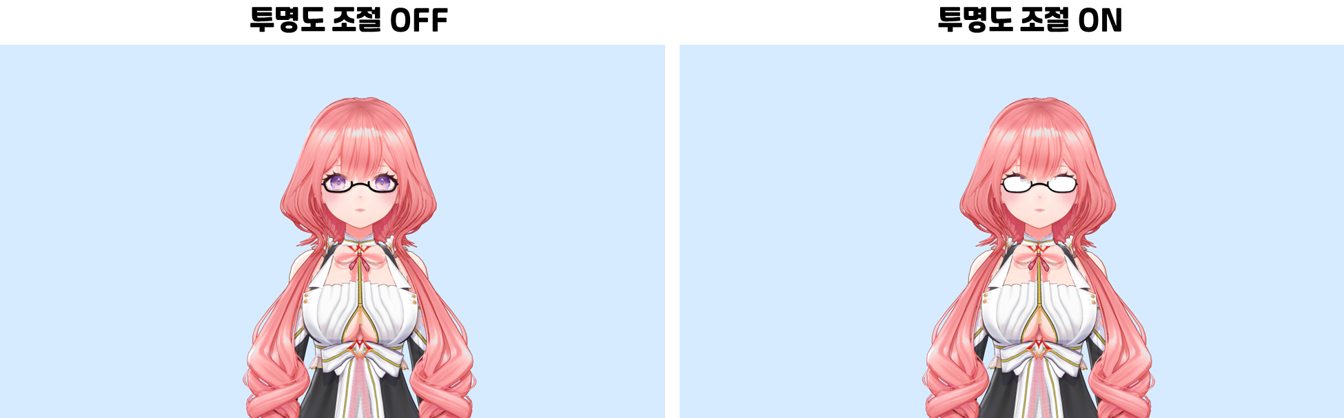 안경알의 투명도를 조절할 수 있는 3D 프랍 안경 아이템입니다.