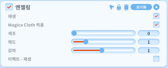 ※ Magica Cloth 적용 옵션을 켜시면 Magica Wind와 반응하고 움직일 때 날개가 펄럭입니다.