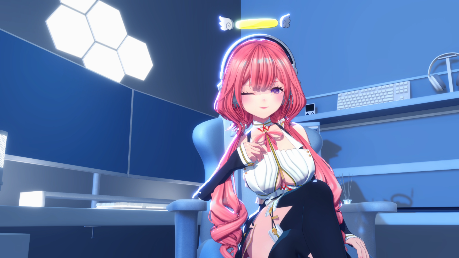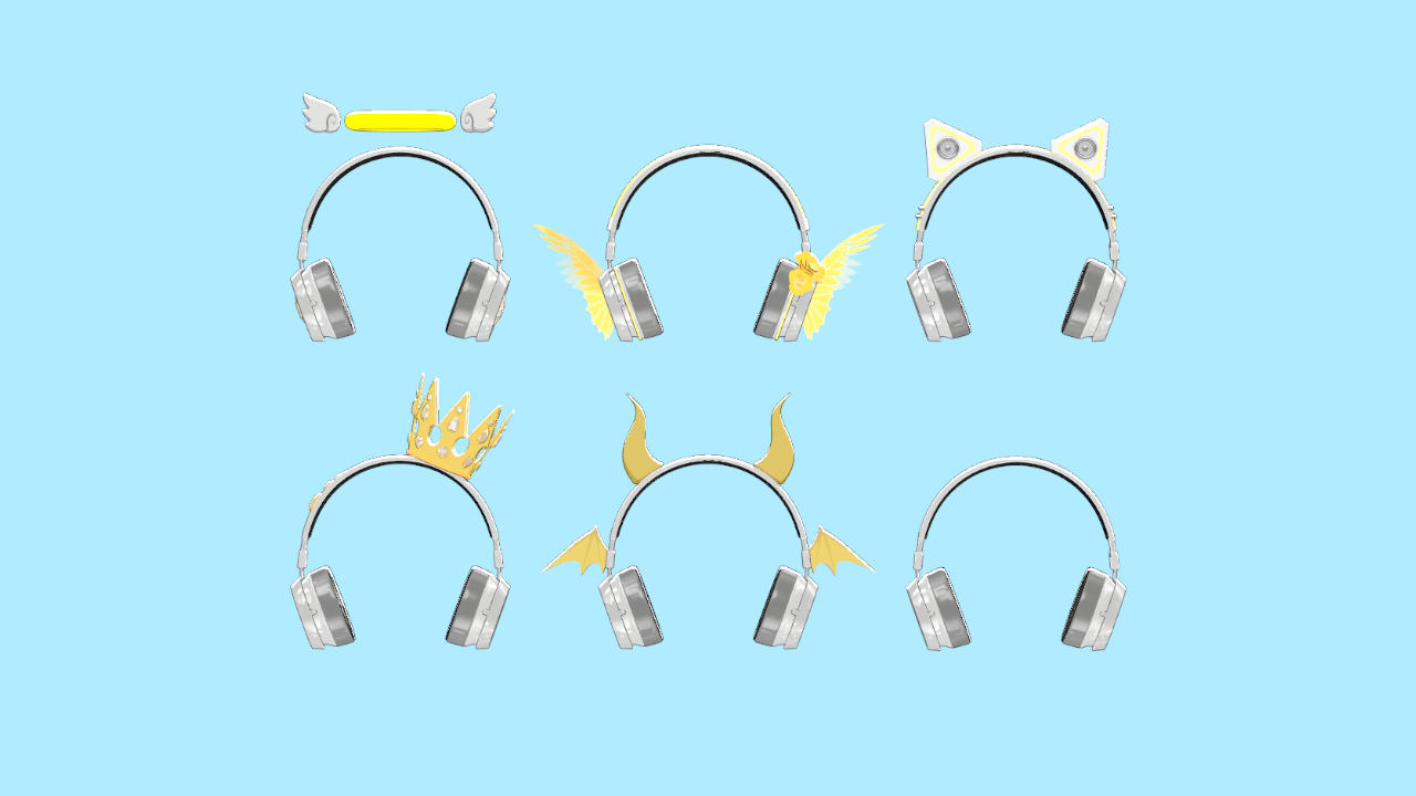 헤드셋에 여러가지 장식물이 달려있는 프랍 아이템입니다.