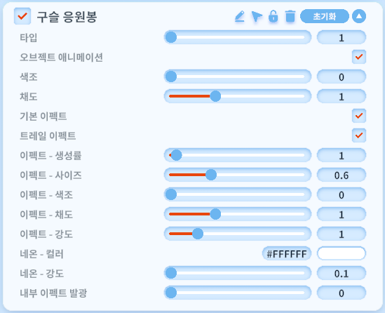 - 이펙트 조절 옵션