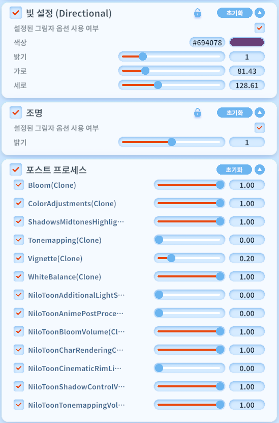 - 빛 설정