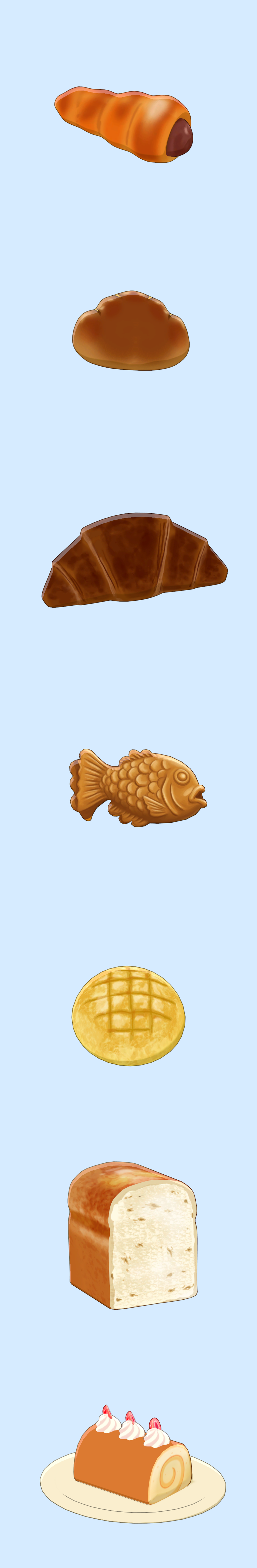 7가지 빵으로 구성된 세트 프랍 아이템입니다.