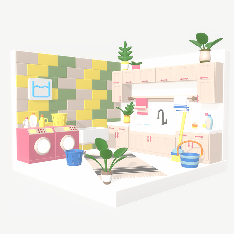 [3D배경] 카툰룸: Laundry35