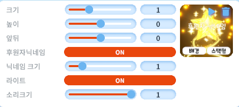 라이트 기능을 켜서 주변을 밝힐 수 있는 기능이 있으며 후원자 닉네임 ON/OFF가 가능합니다.