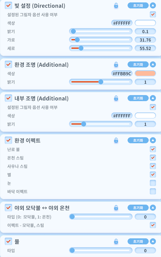 기본적으로 낮과 밤 버전의 조절 옵션은 동일하며, 해당 버전은 밤 버전입니다.