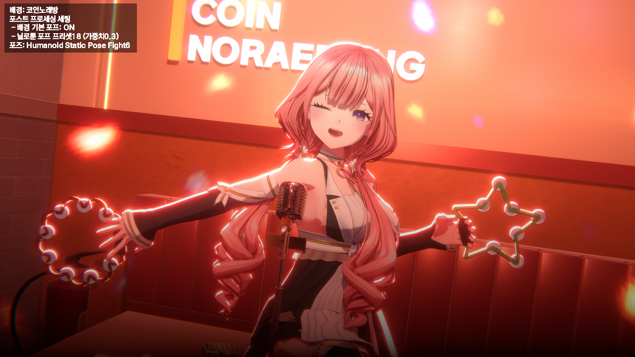 캐릭터 선택 → 캐릭터 설정에서 에디팅 모드 'T 포즈' 를 누르시면 모션이 멈추고 T포즈로 고정되어 캐릭터 프랍을 장착하기 쉬워집니다.