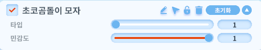 ※ 민감도를 조절하여 곰돌이 귀를 고정하거나 더 많이 움직이게 할 수 있습니다.