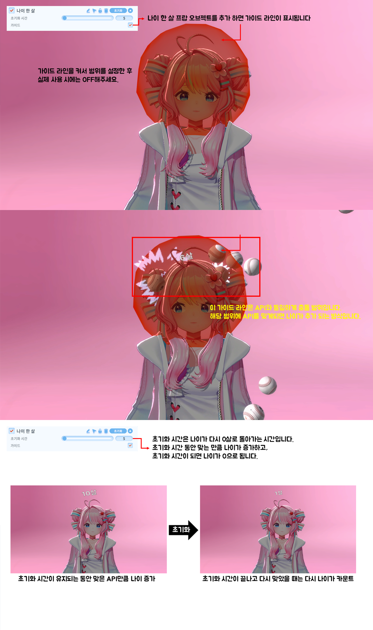 API처럼 범위를 지정하고, 해당 범위에 API를 맞으면 나이가 +1됩니다.