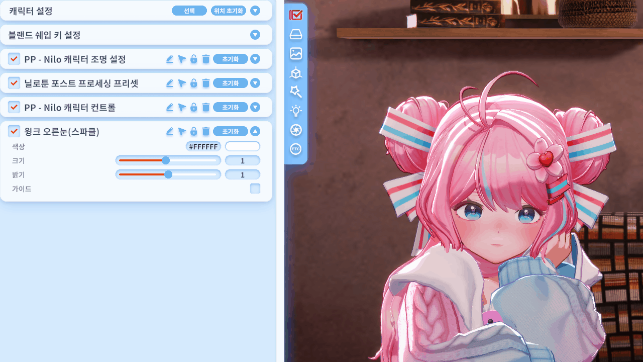윙크를 하면 반짝이 스파클 이펙트가 생성되는 윙크 프랍입니다.