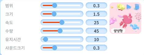 범위, 속도, 크기, 수량을 자유롭게 조절 할 수 있습니다.